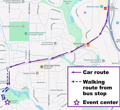 For the best transit options, see www.trimet.org for bus lines 62 or 45.